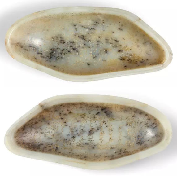此盒内藏文与玉册上所镌近乎一样,以整块籽玉留皮随形掏膛,精妙卓绝。盒外光素无纹,盒内镌刻藏文,描以金漆,历史价值极高。此物见证汉藏文化交流,除拉萨所藏,难得一见,其重要性毋庸置疑。